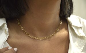 گردنبند قلب کل زنجیر تشکیل شده از قلب های با سایز درشت